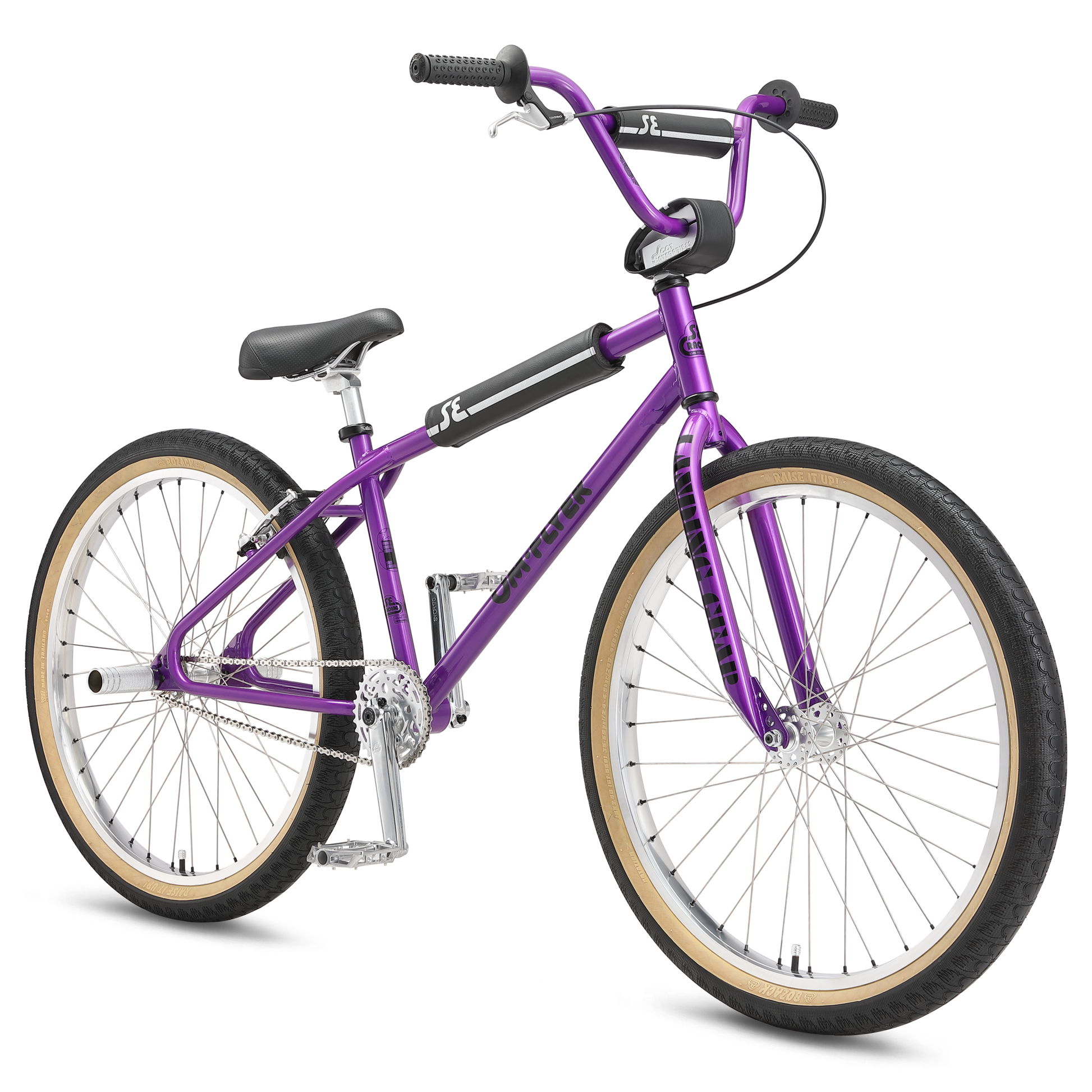 A staple in BMX for nearly as long as the sport has been in existence, the 26” OM Flyer was originally designed by and named after SE’s founder, Scot “Old Man” Breithaupt. With its blue colorway mixed in with bits of brown and the camouflage pads, this bike captures the essence of BMX's past four decades. It’s built to last with a retro-styled 4130 butted Cr-Mo frame featuring a classic looptail rear end. Long live the OM!